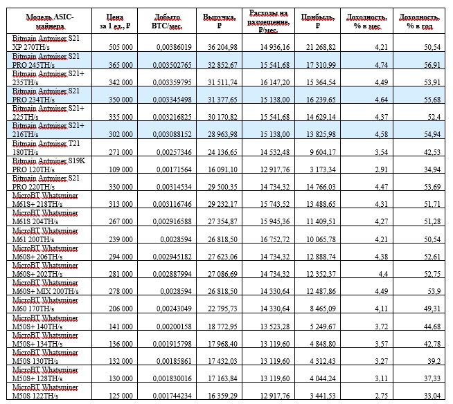 1. Bitmain Antminer S21 PRO 245 TH/s — 4,74% мес. / 56,91% год;0,00350277 BTC