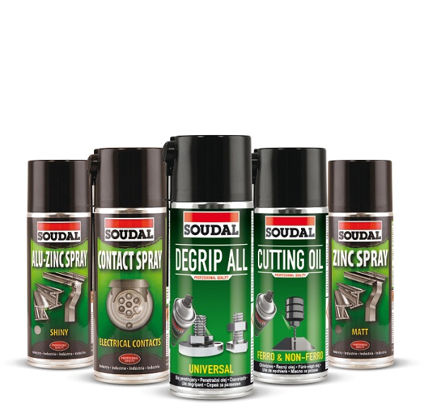 По спектру применения технические спреи подразделяются на три группы: сервисные, очищающие и смазочно-защитные средства. Большинство из аэрозолей Soudal обладают особым техническим решением клапана, обеспечивающим распыление в любом положении в диапазоне 360 градусов.