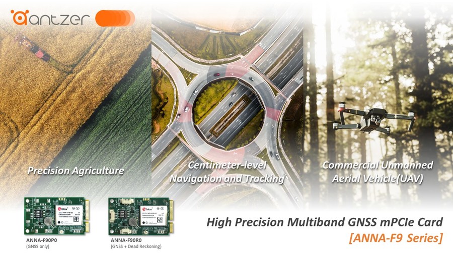 Тайваньская компания Antzertech, являющаяся поставщиком комплексных решений в сферах Интернета транспортных средств (Internet of Vehicles, IoV) и телематики, представляет свою высокоточную карту расширения ГНСС, способную обеспечивать точность позиционирования на сантиметровом уровне. Изделие выпускается в форм-факторе mini-PCIe с ГНСС-модулем u-blox F9P/F9R, который может легко интегрироваться со встроенной системой для получения компактного результата. Уникальная технология CAN-to-ADR, разработанная компанией Antzertech, расширяет его использование на туннели и «городские каньоны», где спутниковый сигнал ослаблен или заблокирован.
